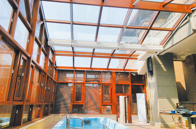由于房間要采光通風(fēng),而且要有很好的密封效果,陽(yáng)光房立面、頂部可做開(kāi)啟的門窗,頂面天窗使用了世界品質(zhì)丹麥威盧克斯天窗。基于陽(yáng)光房的如上特點(diǎn),我們?cè)谠O(shè)計(jì)和建筑陽(yáng)光房時(shí),對(duì)于不同用途的陽(yáng)光房在整體造型及結(jié)構(gòu)方面,應(yīng)視周圍環(huán)境和場(chǎng)地的制約而定,再做出相應(yīng)的設(shè)計(jì)方案。